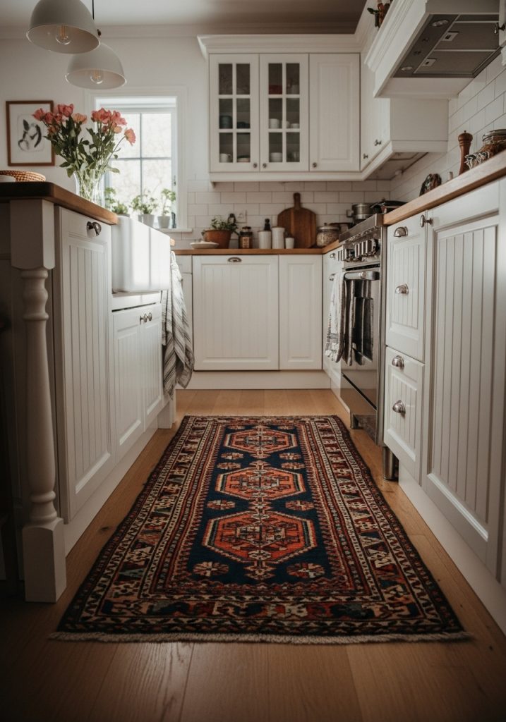 A vintage runner placed between the island and the sink adds a layer of color and comfort. It’s also a great way to introduce pattern without committing to tiled walls. If you love the look of textiles, you might enjoy exploring rug stores in Austin or similar shops for unique, handmade finds.