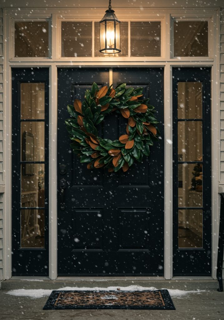 A magnolia wreath offers year-round elegance but looks especially beautiful in winter thanks to its glossy green leaves and copper undersides.