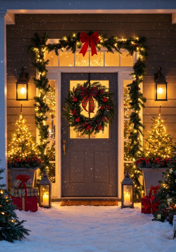 This style fits right in with the holiday spirit of front porch Christmas decorations ideas.