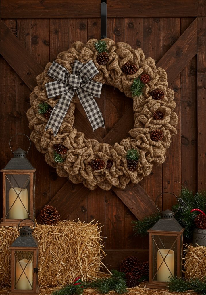 A burlap wreath feels handmade and cozy—perfect for farmhouse-style homes.