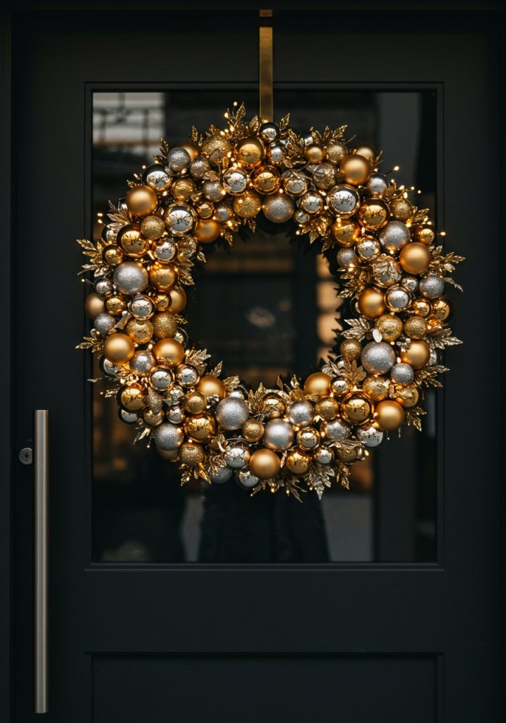 Use a grapevine or foam base and glue on various-sized metallic ornaments for that chic, holiday sparkle. FYI, it looks especially stunning against dark front doors or neutral walls.